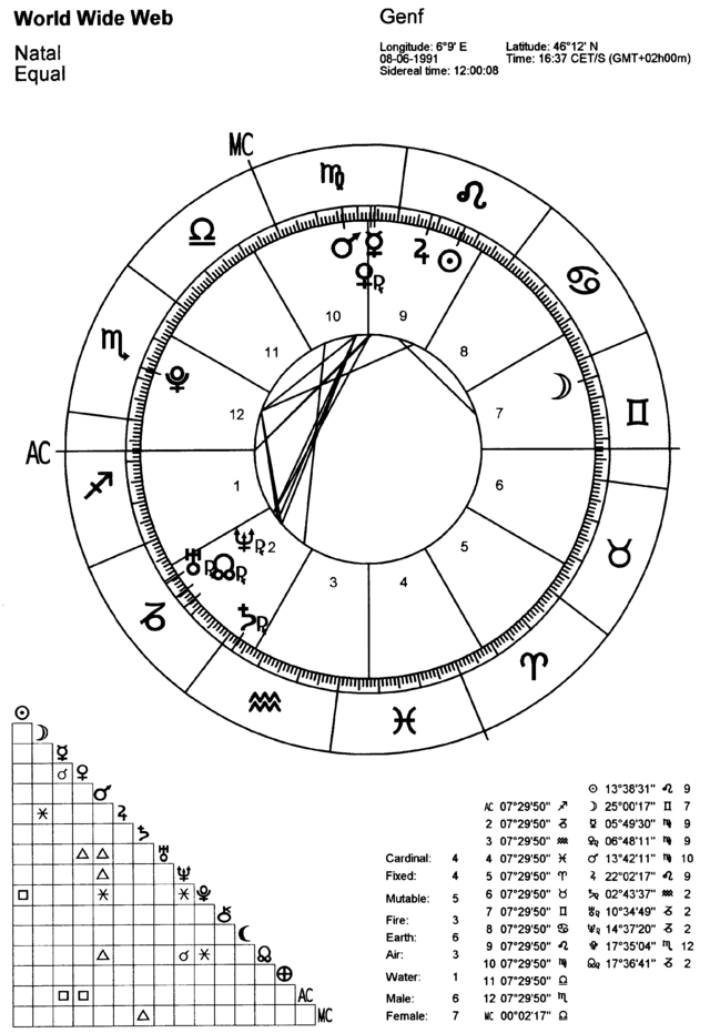 Few major world events have a documented starting point, which is needed to chart their horoscopes. But the World Wide Web, bringing the world into each computer, is timed to the microsecond. So, we have a fixed birth and a complete horoscope chart for it.